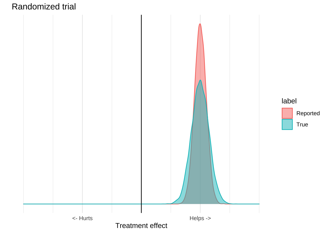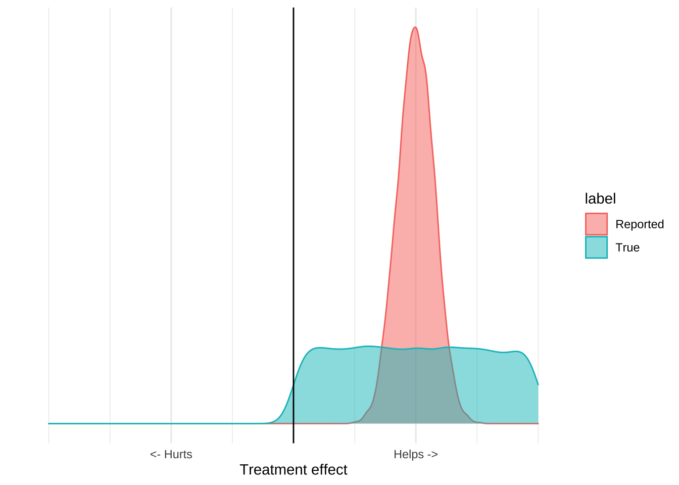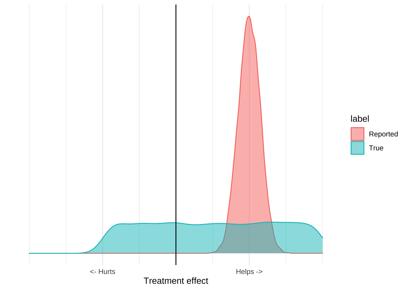 These distributions have a mean, which is usually the estimated treatment effect, and standard deviation which tells you something about how certain you should be in the results. The reported distribution is, however, only half the story because it only accounts for quantifiable error.
